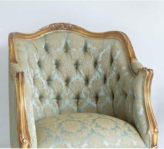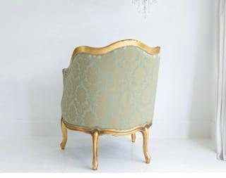 Library Chair – Gold & Green Silk Fabric – Carved Surround – Antique Gilt Range