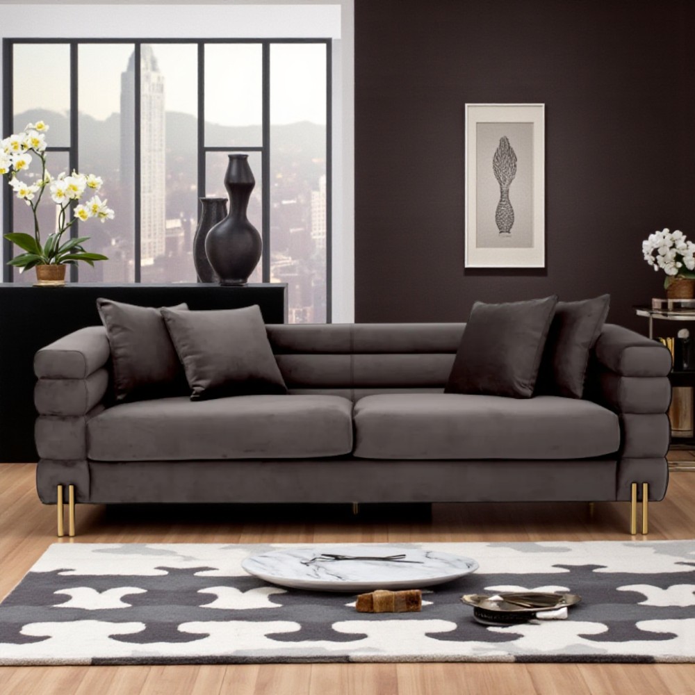 4 Seater Sofa – Deep Ribbed – Brushed Brass Finish Legs – Savoy Grey Velvet